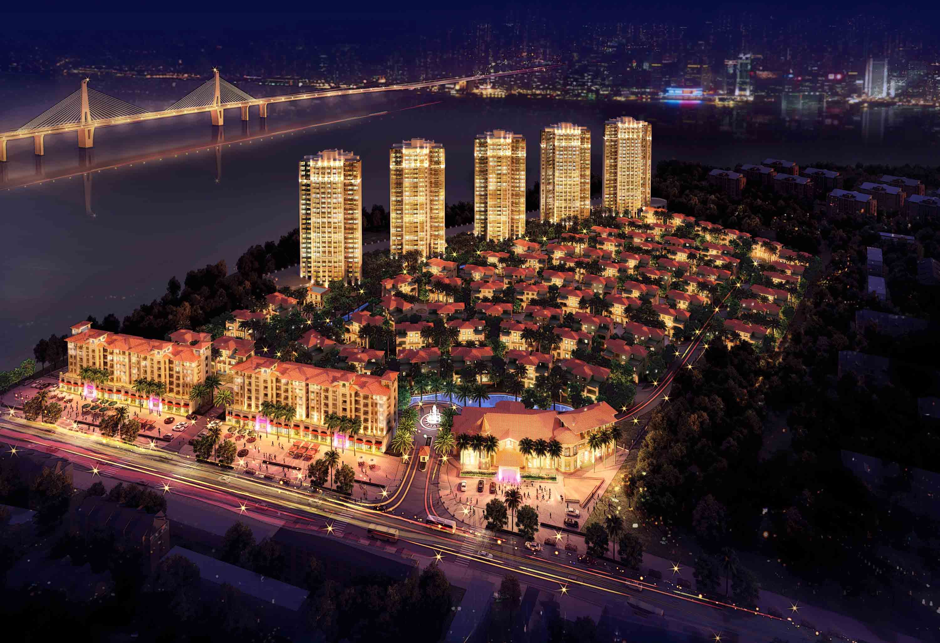 The “Vogue Villa” project occupies a total site area of 73,900 sq. m. The construction area totals 100,000 sq. m. The project makes the best use of surrounding natural beauty. On the other hand, it features a wealth of gardens and water features to create multi-level, low-density residential zones. In the planning is the construction of about 46,000 sq. m. of high-rise residences; about 12,000 sq. m. of multi-story apartment buildings; about 30,000 sq. m. of villa residences; along with 4,500 sq. m. of commercial facilities. It’s expected to provide 658 Luxury residences and 247 car parking spaces.